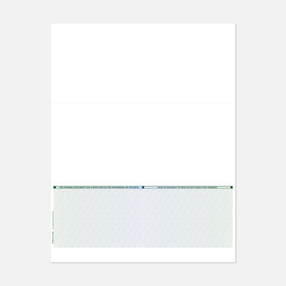 8 1/2" x 11" Secure Check - Bottom, Blue, Artificial, CopyBan Capture Void Pantograph , Full Chemical VOID Sensitivity, Warning Band, Defaced Voucher, Thermochromic Ink, LaserLock, Microprinting, Control Number, Laid Lines, Latent Image, (2000 Sheets